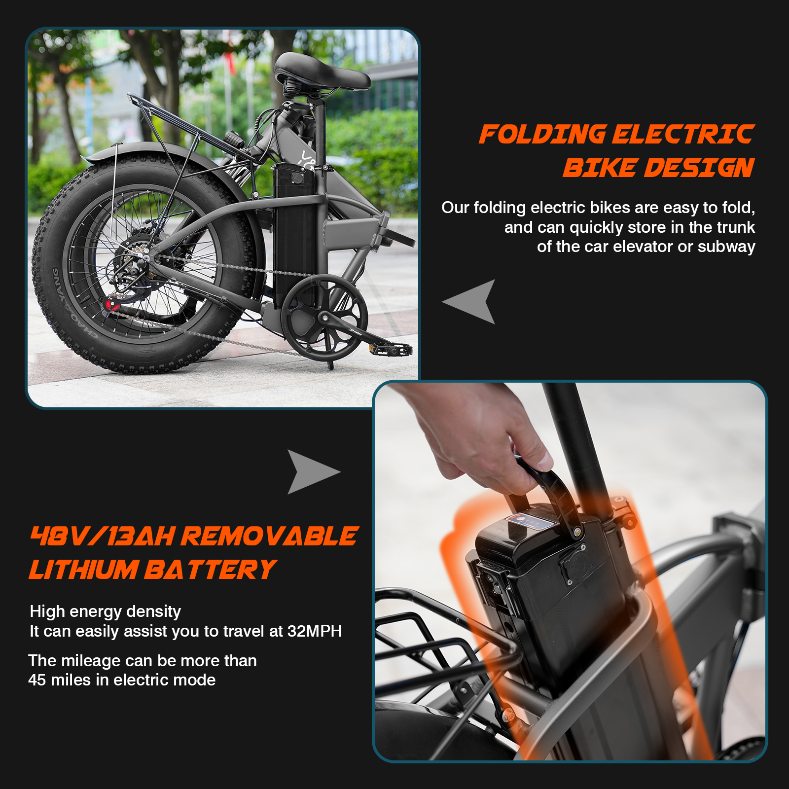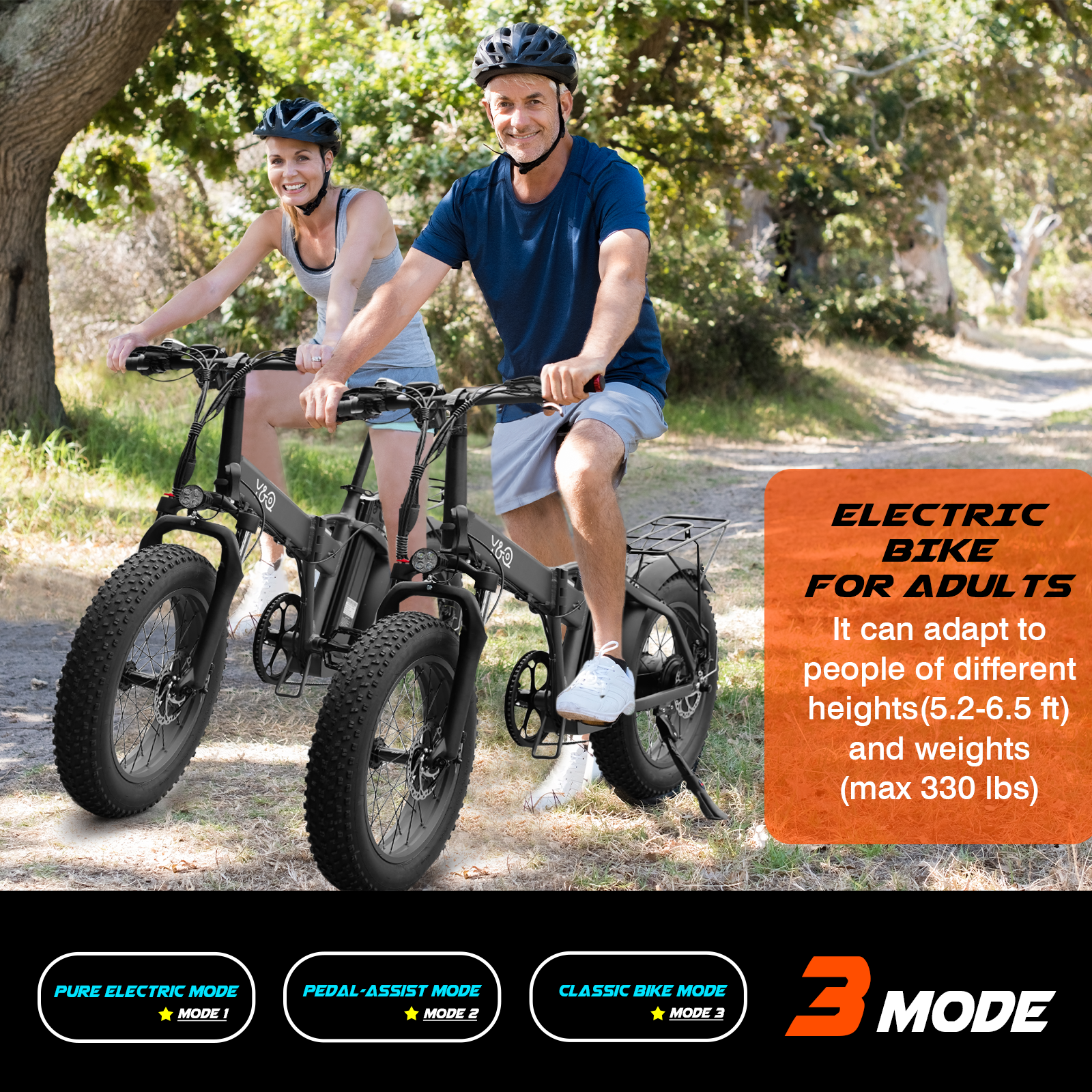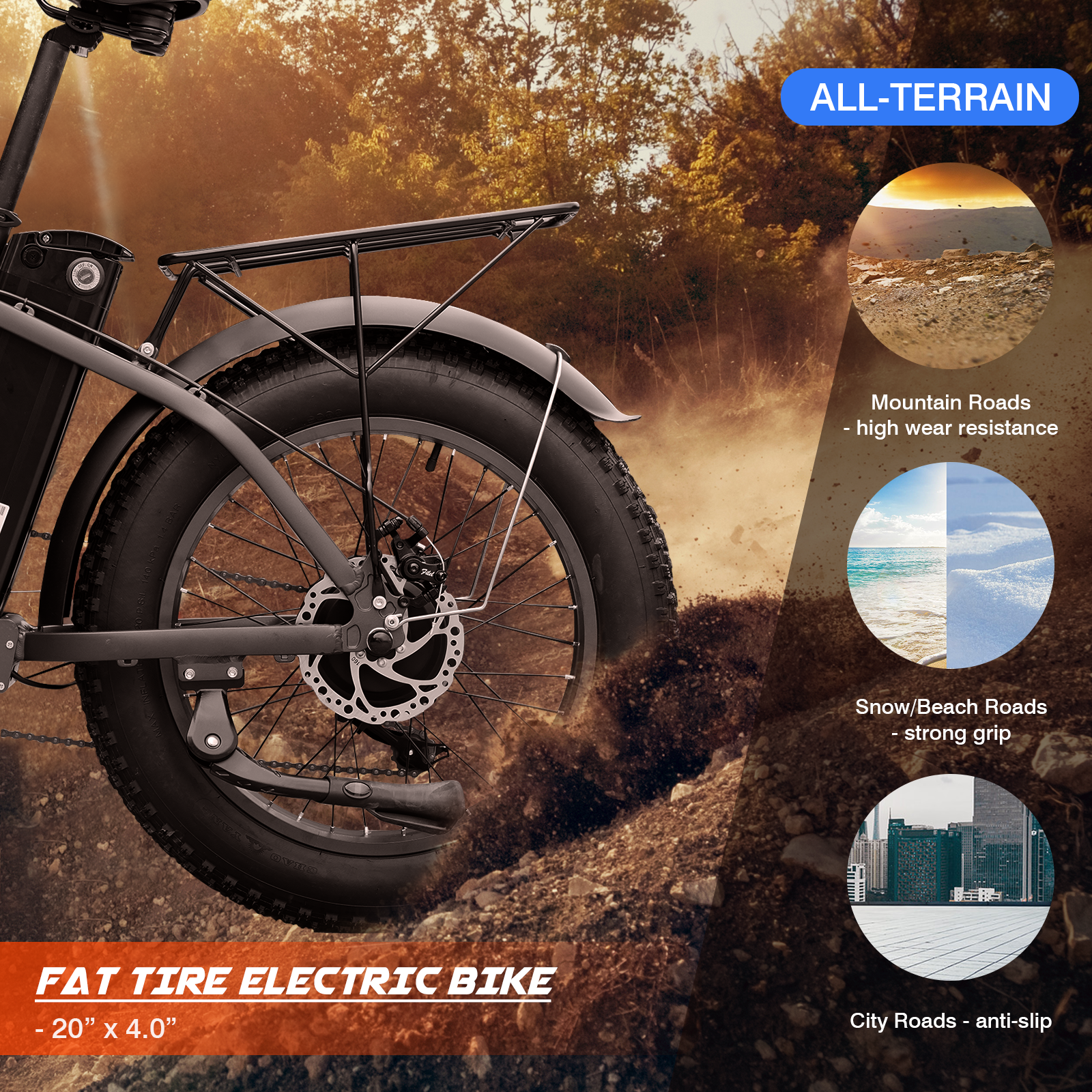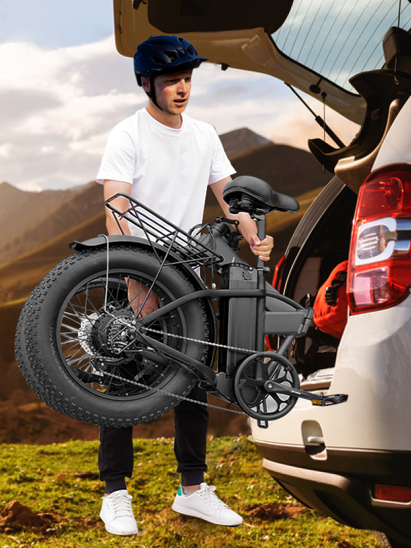 Powerful foldable electric bike for urban adventures. Conquers all terrains with fat tires and robust battery.